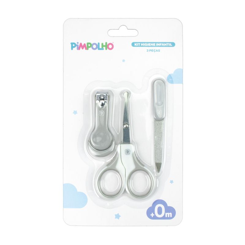 Kit Higiene 3 Peças Unissex Pimpolho 9268 Acabamento fino e sem rebarbas, arestas arredondadas e design anatômico. Possui tesoura com pontas arredondadas e cabo emborrachado com desenho antideslizante.