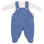 Macacão de Menino Cotele Jardineira com Body - Azul Jeans
