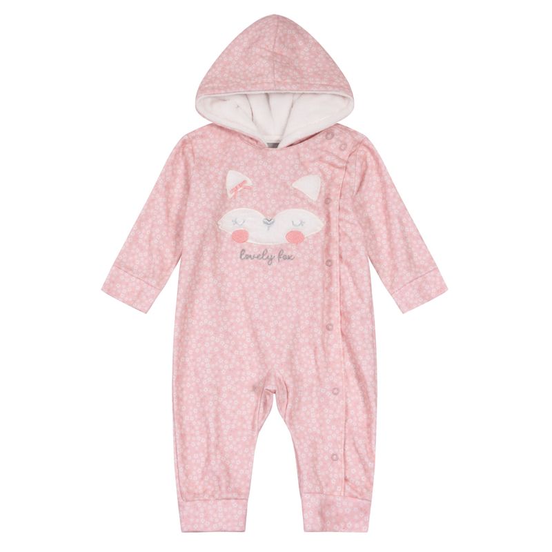 Macacão Feminino Bebê Mundi 55333 Material: SOFT/ PELO Manga: MANGA LONGA COM PUNHO Abertura: BOTAO Aplique Bordado Capuz Forrado