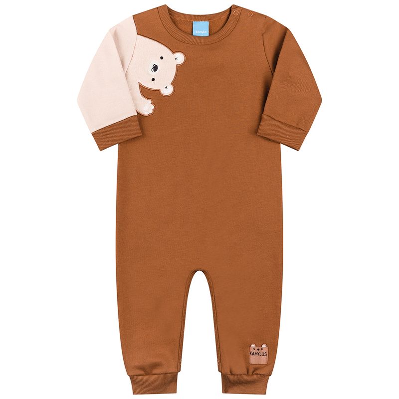 Macacão Masculino Bebê Kamylus 43739 Material: MOLETOM PENTEANDO Manga: MANGA LONGA COM PUNHO Barra: BARRA COM PUNHO Abertura: BOTAO Veste Fácil