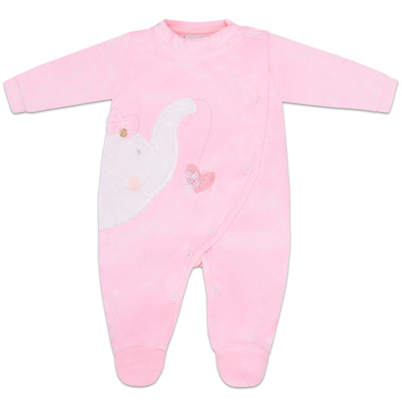 Macacão Menina Plush Lovely Elephant Bebê Miniclo 30641 Observação: Tamanhos RN / P com pé - M /G sem pé. Composição: 80% Algodão 20% Poliéster. Grade Tamanho: RN-G BEBE Código Interno: 30641-RNG
