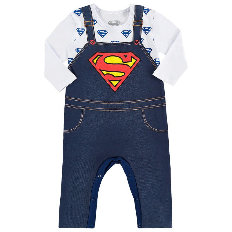 Macacão Superman Bebê Marlan - em Suedine Penteado Imita Jardineira