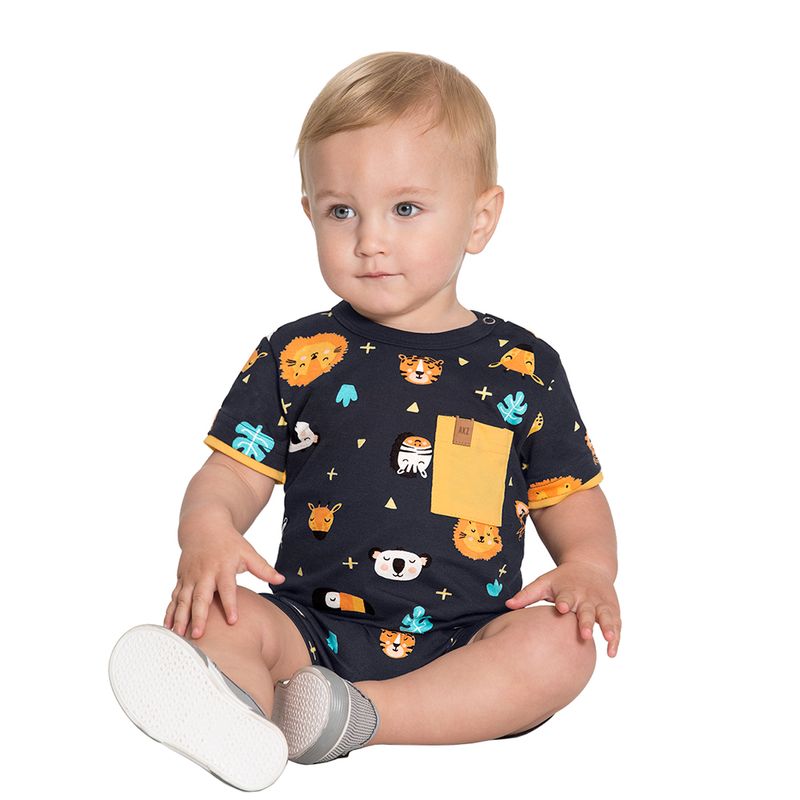 Macaquinho Bichinhos de Menino Bebê Alakazoo em Meia Malha Penteada