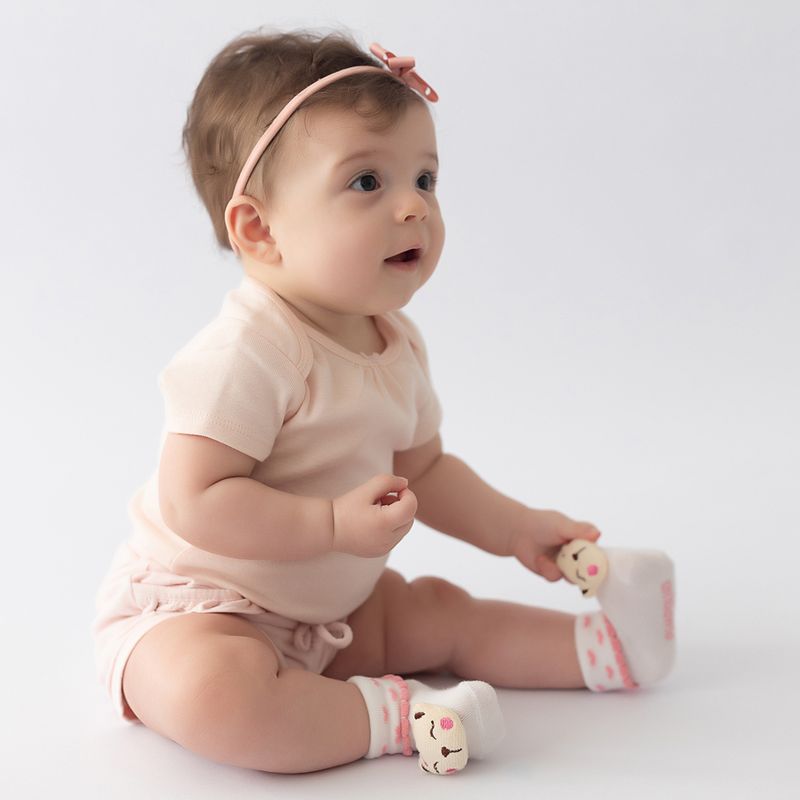 Meia Bichinhos LED Feminina 00-15 Pimpolho 300632 A meia bichinho led é macia e oferece o conforto ideal, vai proteger e manter os pezinhos do bebê sempre quentinhos. Ajuda o bebê no desenvolvimento da criatividade, imaginação, cognição e motricidade com suas luzes, cores e texturas. Durabilidade do led 100.000 ciclos. Para ativar a luz led é necessário um leve toque no bichinho. LEDs encapsulados resistentes à água. Pode ir à máquina de lavar.