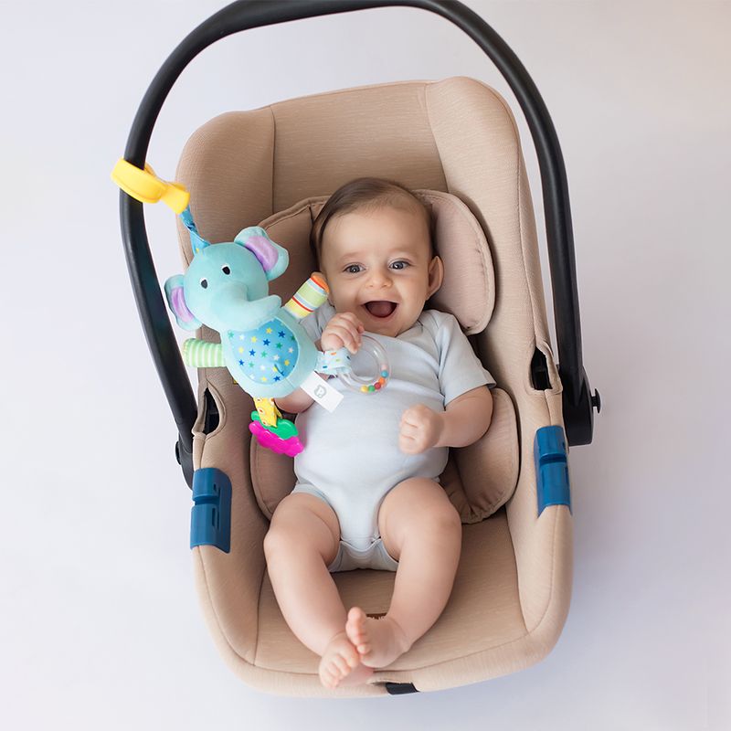O móbile para bebê com chocalho da Pimpolho pode ser utilizado em carrinho, bebê conforto ou ainda levado em passeios.