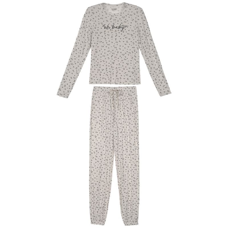 Pijama Blusa e Calça Feminina Adulto Marialícia 183965 Material: VISCOSE Manga: MANGA LONGA SEM PUNHO Barra: BARRA TRADICIONAL Abertura: FECHADA