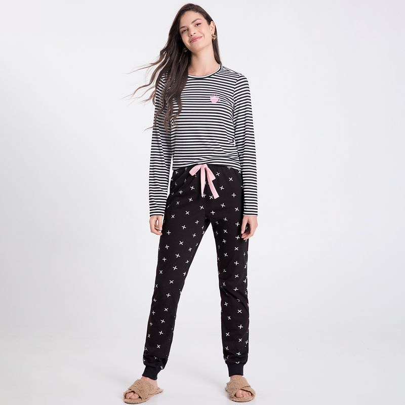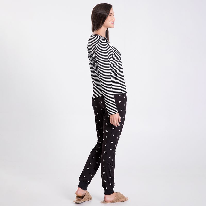 Pijama Blusa e Calça em Malha Visco Stripe Feminino Adulto Lunender 66360