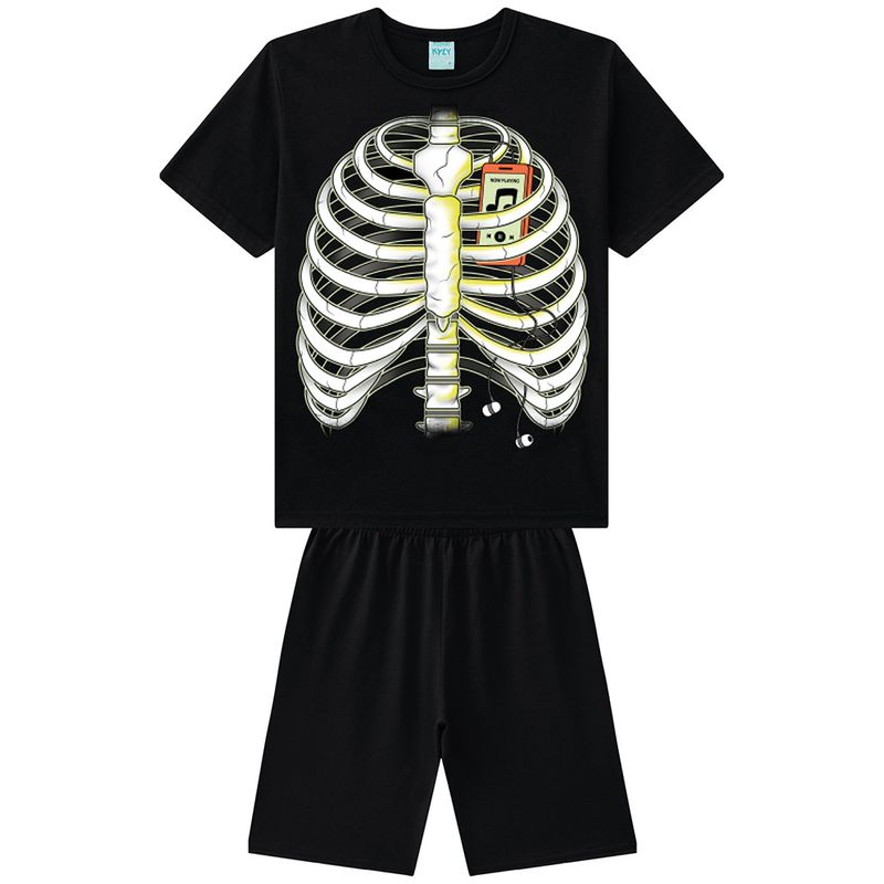 Pijama Camiseta e Bermuda Esqueleto Juvenil Kyly 111656