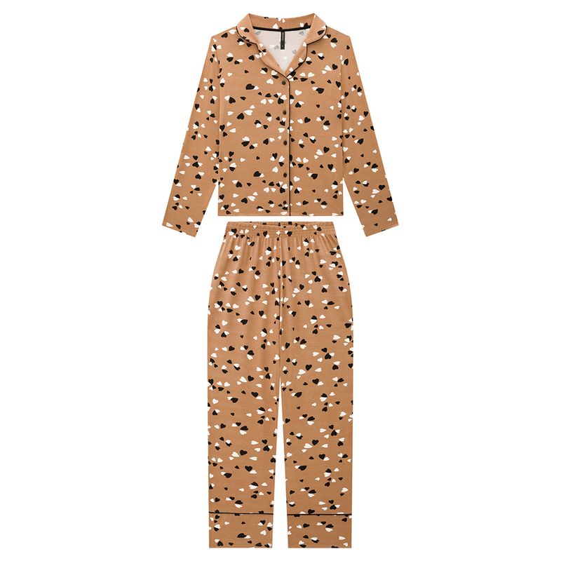 Pijama Feminino Adulto Lunender 67353 Material: MALHA VISCOSE COM ELASTANO Manga: MANGA LONGA SEM PUNHO Barra: BARRA TRADICIONAL Abertura: BOTAO