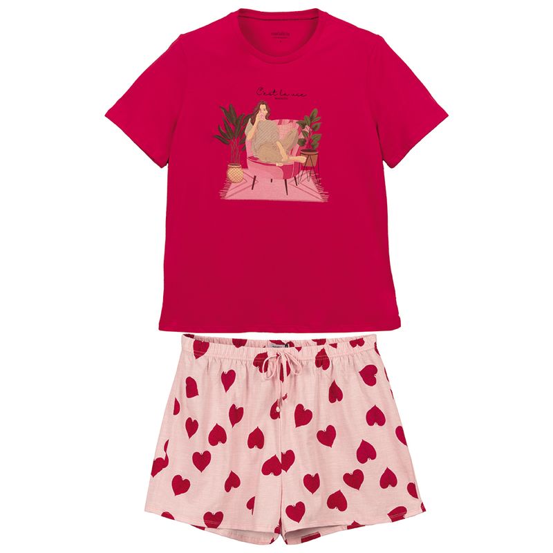 Pijama Feminino Adulto Marialícia 183591 Material: MEIA MALHA PENTEADA Manga: MANGA CURTA Abertura: FECHADA