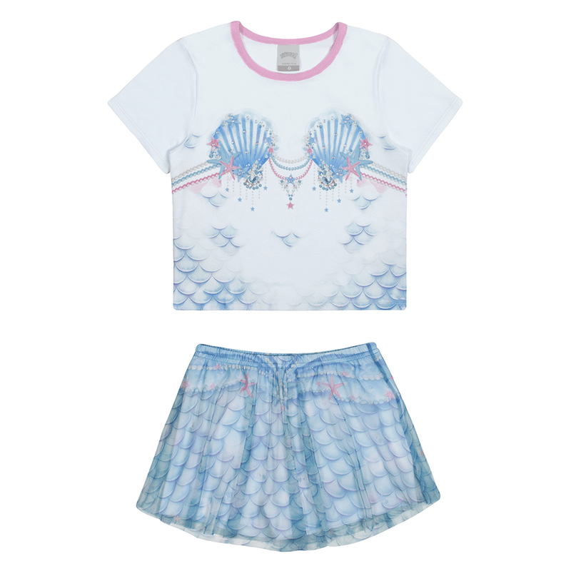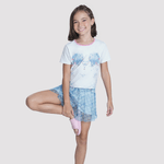 Pijama Feminino Infantil Alakazoo 19228 Material: MALHA Manga: MANGA CURTA Abertura: FECHADA Saia de Tule com Shorts Embutido