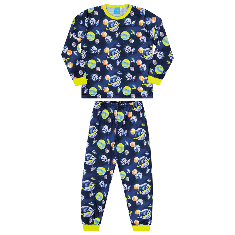 Pijama Masculino Infantil Kamylus 46901 Material: MALHA Manga: MANGA LONGA COM PUNHO Barra: BARRA COM PUNHO Abertura: FECHADA