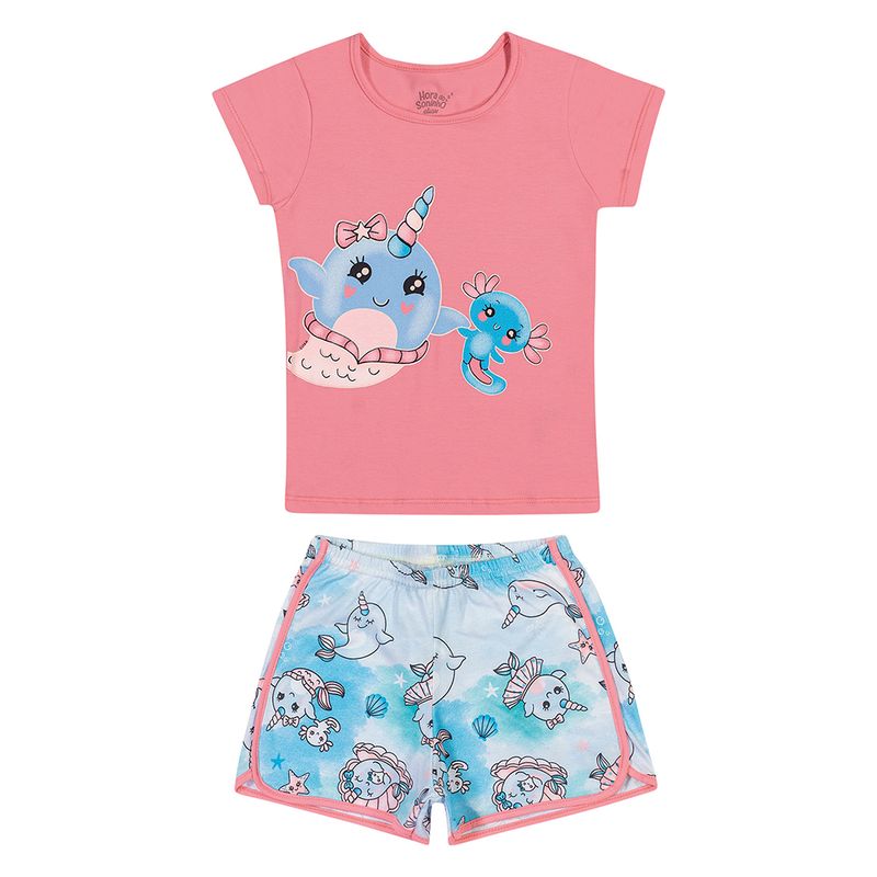 Pijama Menina Blusa e Shorts em Meia Malha Penteada Elian Infantil
