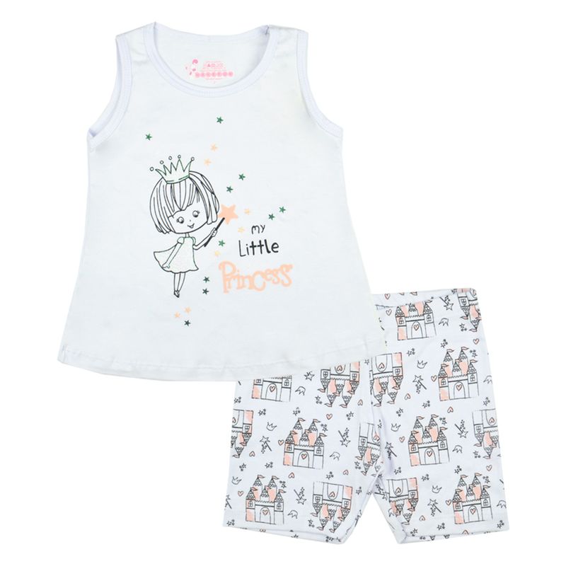 Pijama Princess Have Fun Primeiros Passos | Blusinha em Meia Malha 100% Algodão e Shorts em Meia Malha 100% Algodão
