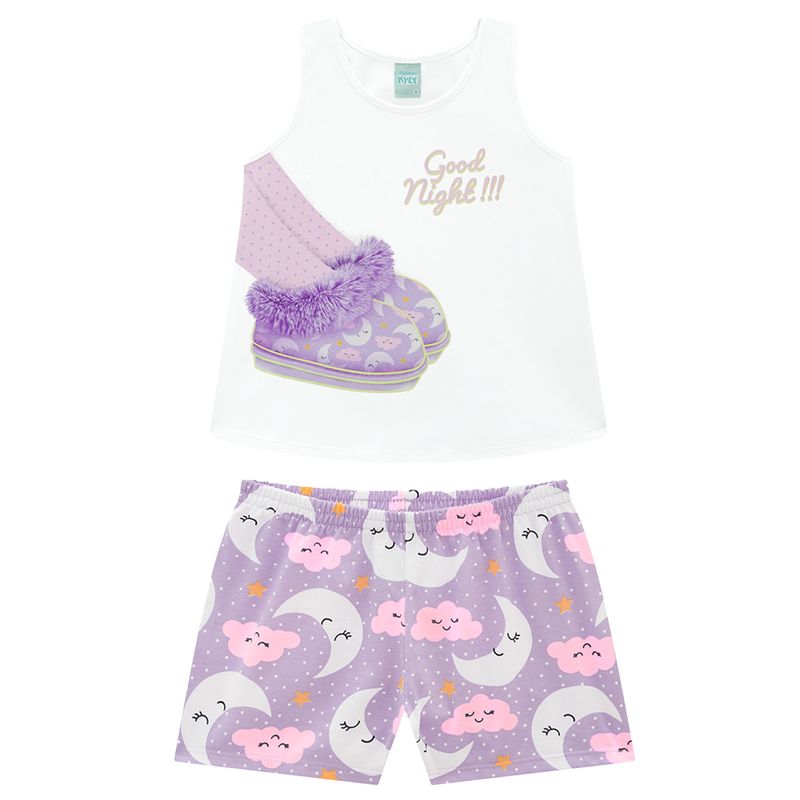 Pijama Regata e Shorts de Menina Infantil Kyly em Meia Malha