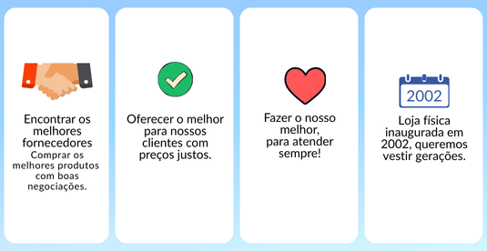 Nossas lojas oferecem os melhores produtos para o enxoval do bebê, roupas e calçados para crianças e jovens que adoram andar na moda. Visando atender também os clientes com um DNA adulto, em 2008 abrimos nossa loja Turma da Moda, localizada em Santo André, na Região do Grande ABC.