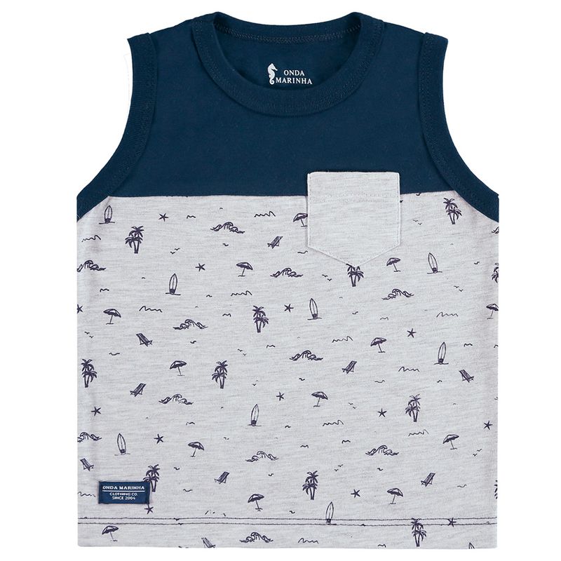 Regata Masculina Infantil Onda Marinha em Meia Malha com Estampa e Bolso