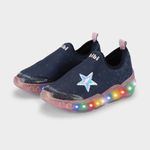 Este tênis é fácil de calçar e oferece um ajuste perfeito aos pezinhos, graças à sua confecção em elastano. Seu solado é especialmente equipado com luzinhas que piscam a cada passo, proporcionando não apenas conforto, mas também diversão para as atividades diárias das meninas.