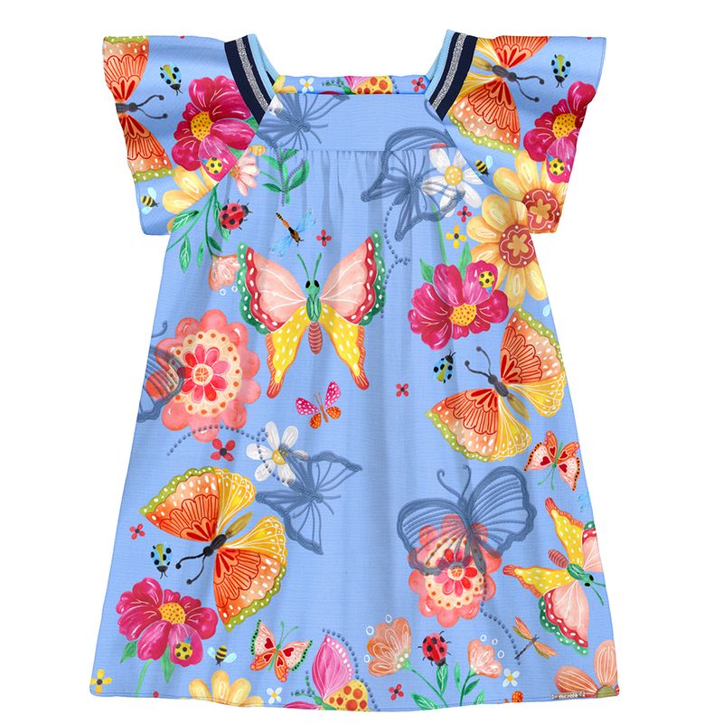 Vestido Borboletas Primeiros Passos Alakazoo em Tecido Rayon Carmel