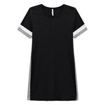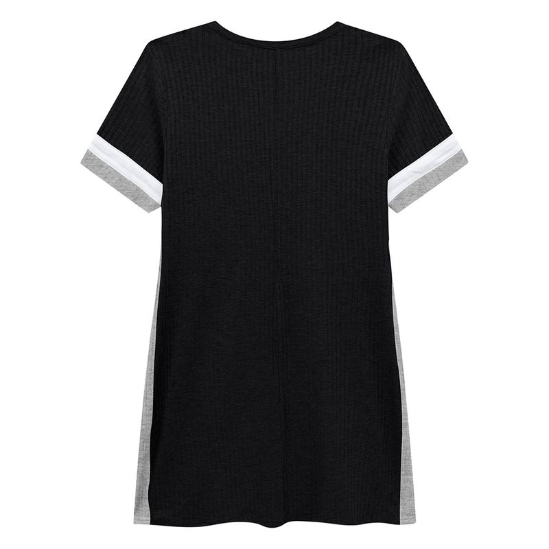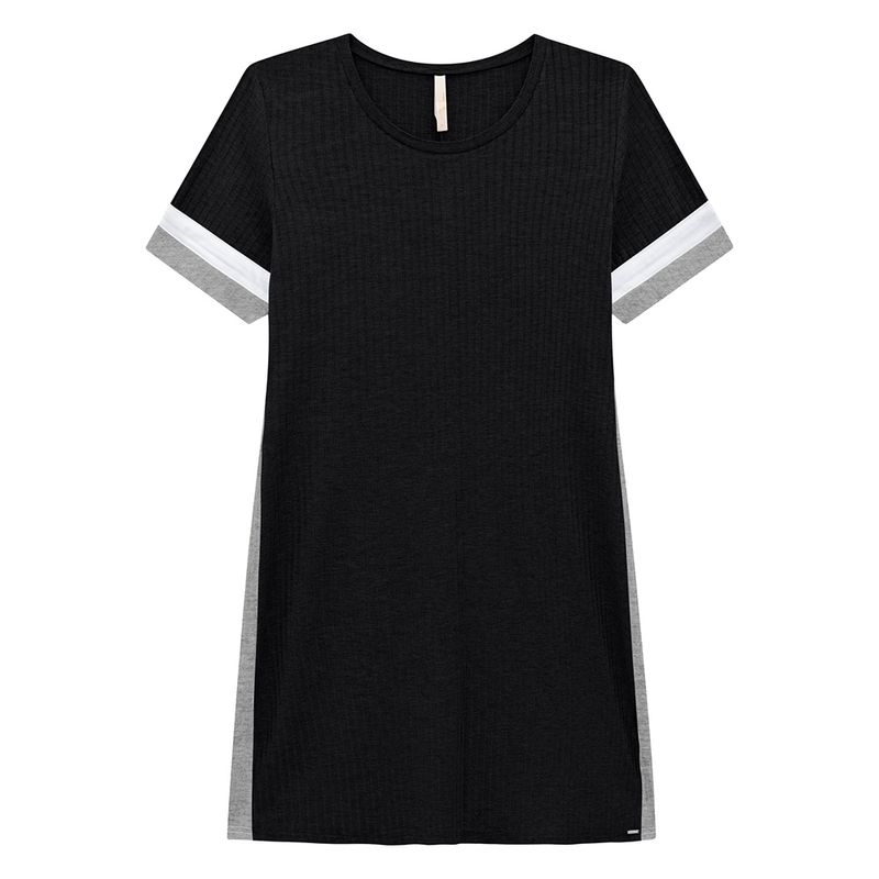 o Vestido Plus Size Canelado Curto É Aquele Modelo com Estilo Confortável Para o Dia a Dia. de Manga Curta, o Modelo Possui Detalhe em Outa Cor Nas Manga e Laterais. Aposte Nos Tênis Para Um Visual Mais Casual, e Para As Ocasiões Especiais, Os Sapatos de Salto ou Sapatilhas São Sempre Uma Boa Opção.
