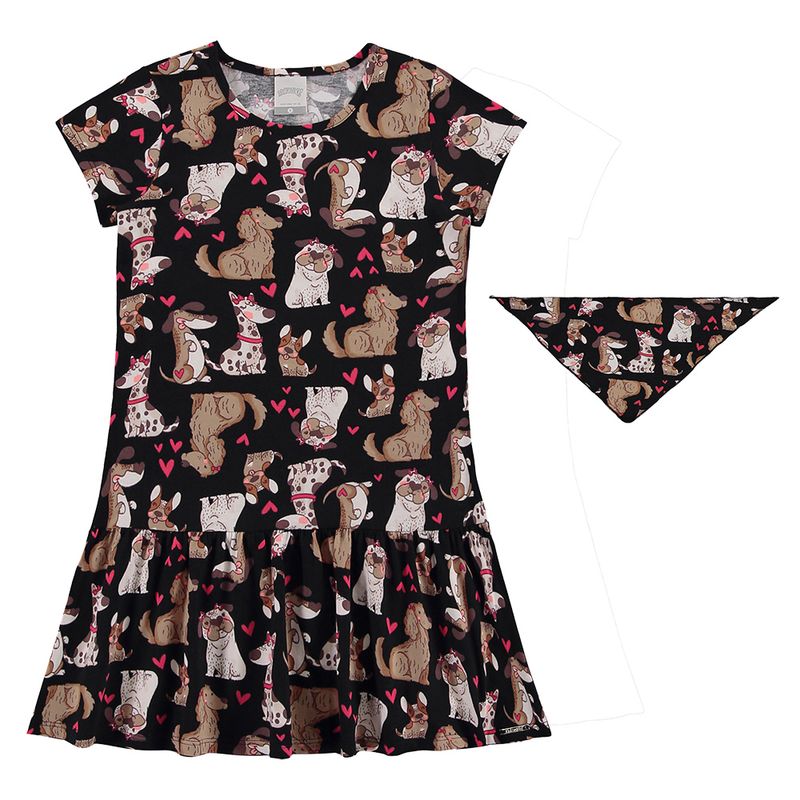 Vestido e Bandana Dogs Primeiros Passos Alakazoo em Meia Malha Penteada