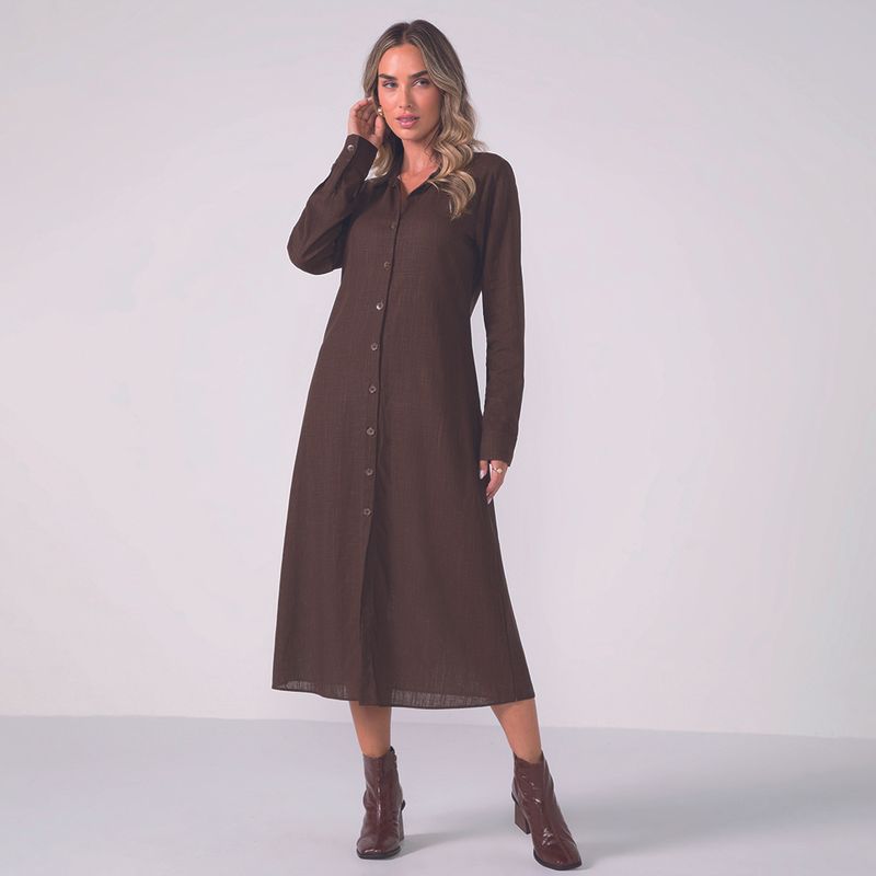 Vestido Feminino Adulto Marialícia 183887 Material: VISCOLINHO Manga: MANGA LONGA SEM PUNHO Barra: BARRA TRADICIONAL Abertura: BOTAO