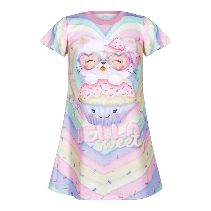 Vestido Feminino Infantil Alakazoo 0140 Material: MOLETINHO SOFT Manga: MANGA CURTA Abertura: FECHADA Aplique Strass