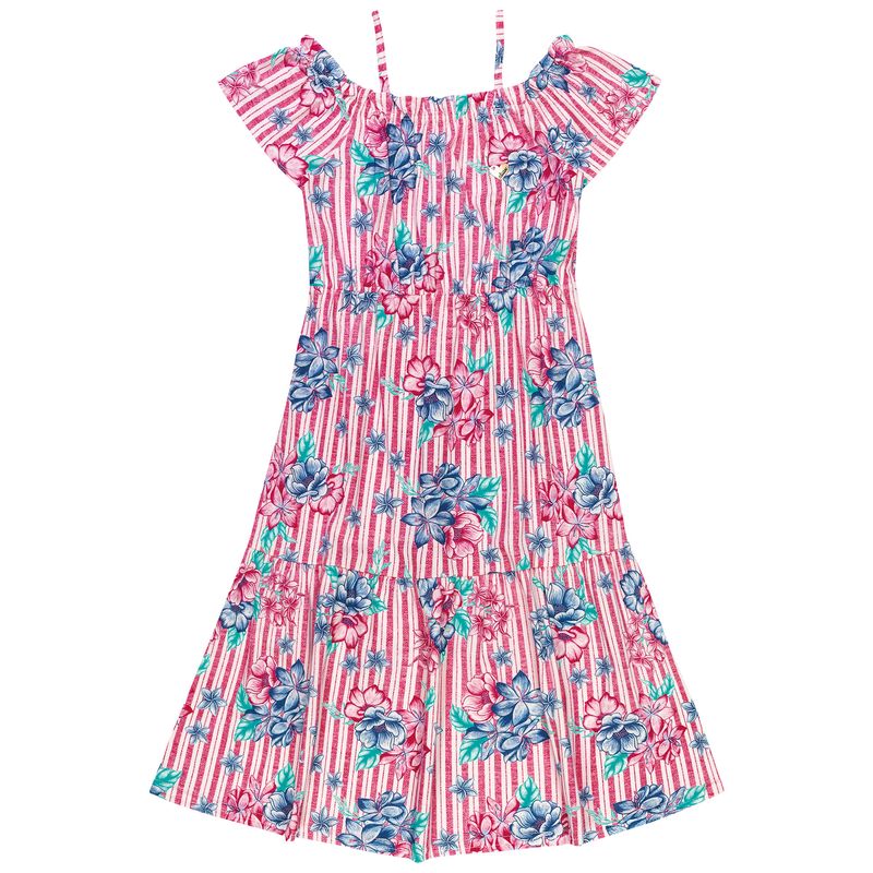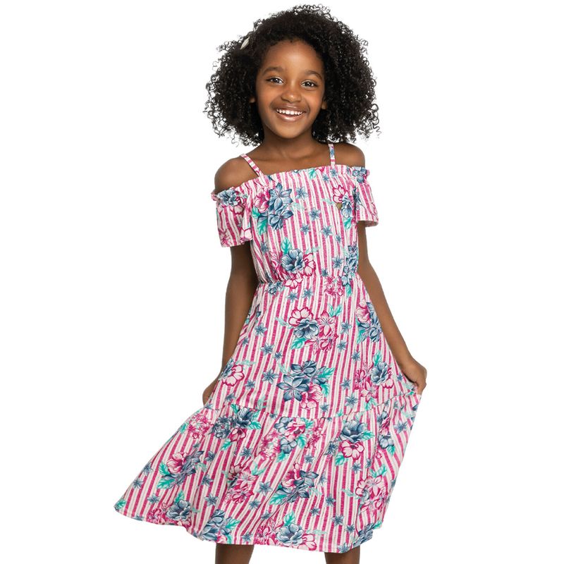 Vestido Flores Infantil Elian em Meia Malha Penteada