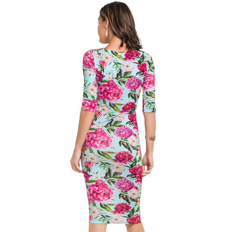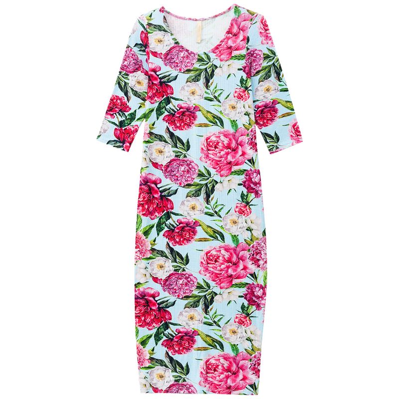 Vestido Midi Adulto Lunender em Malha Canelado Wave
