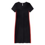 modelagem Reta comprimento Midi manga Curta decote Redondo detalhe Retilínea Nas Laterais malha Crepe: Tecido Incorporado Que Modela o Corpo e Evita Transparência