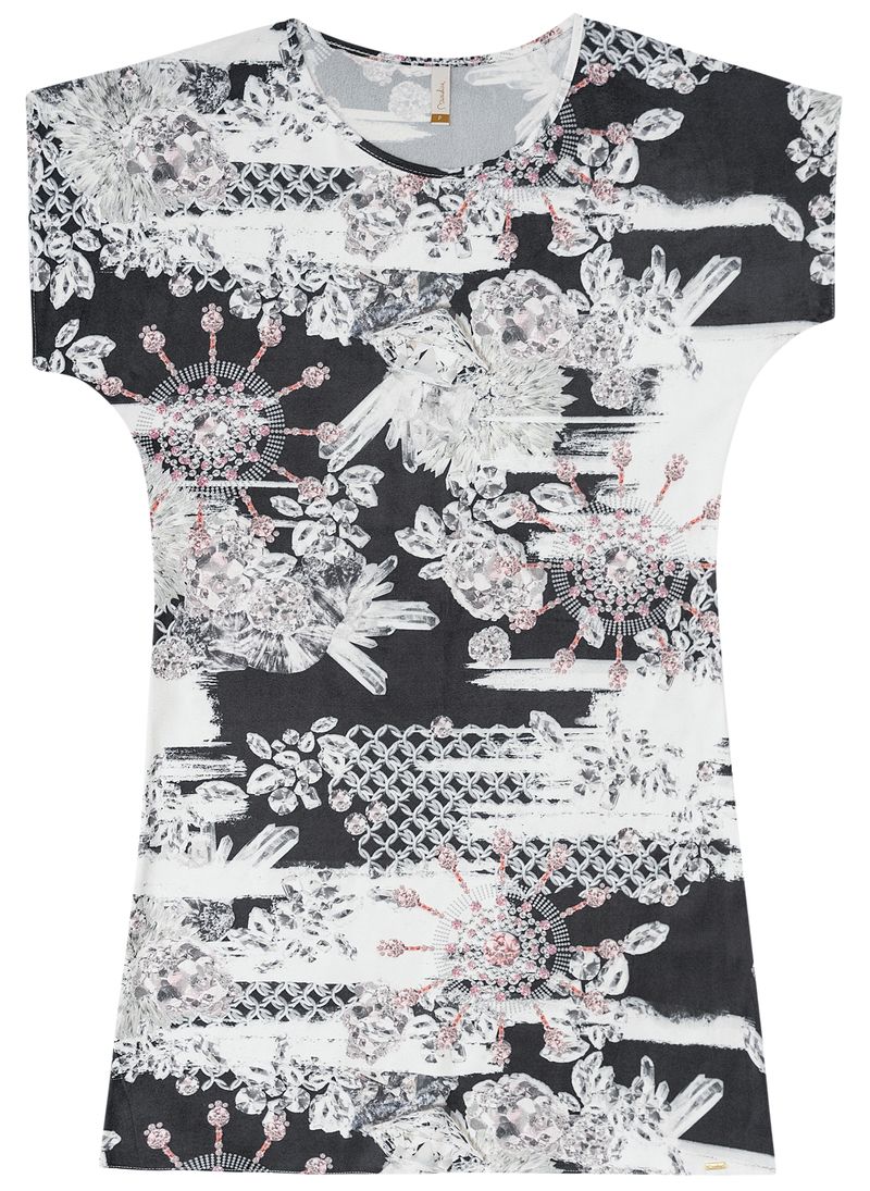 Vestido Preto Estampado em Suede Marialícia com Estampa Sublimada
